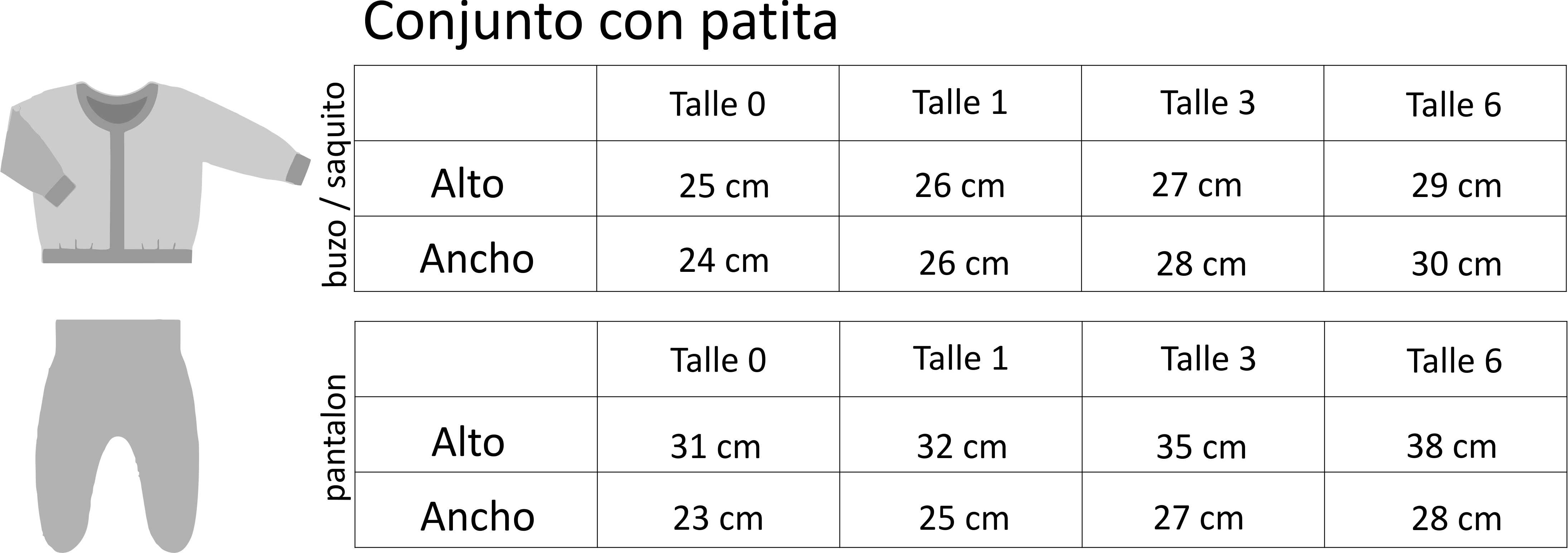 Talles disponibles en 0, 1, 3 y 6 meses